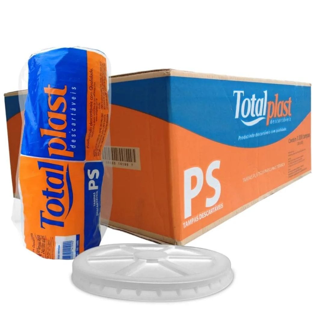 TAMPA DESCARTÁVEL TOTALPLAST PS PARA POTE 240/300ML E POTE 480 ALTO EPS TR 1000UN BLUEPACK EMBALAGENS 71183
